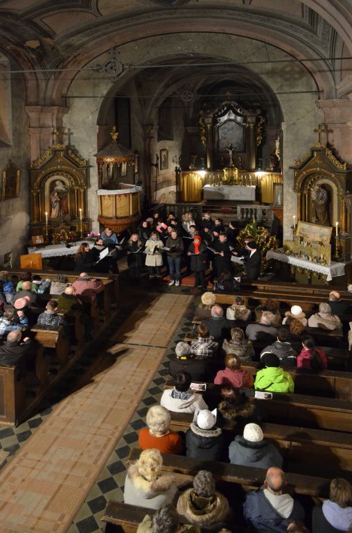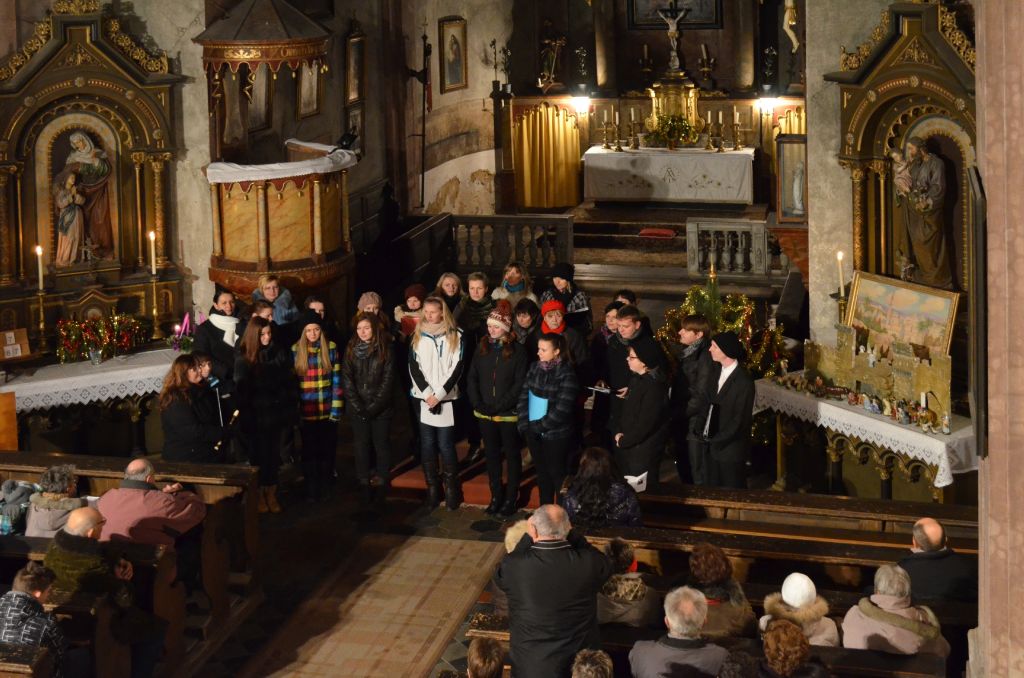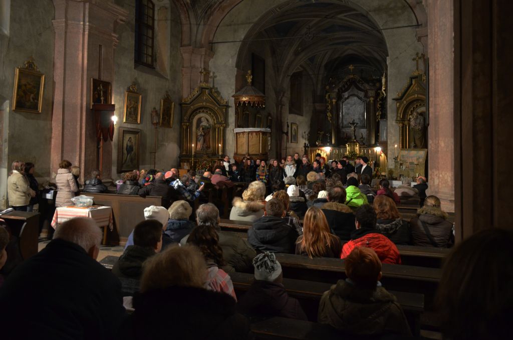 Vyslechli jsme si vánoční písně v podání známé sopranistky Pavlíny Senič doprovázené Karlem Vencourem na trubku a s Marcelem Javorčekem u varhan. Na toto již téměř domovské trio navázaly pěvecké sbory DPS Camerata a Žatecký příležitostný sbor. Jejich podání písně Bim Bam nadchlo Pavlínu Senič natolik, že je požádala o zopakování a píseň tak ukončila krásný koncert a navodila tu správnou vánoční atmosféru pro další program na návsi před kostelem.