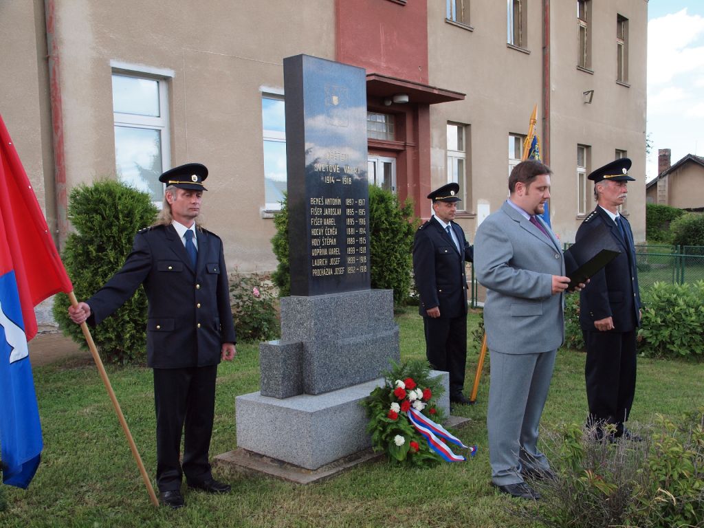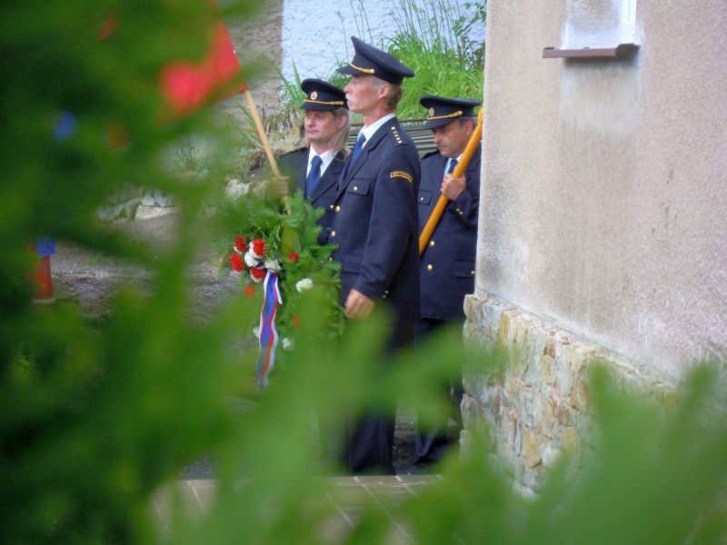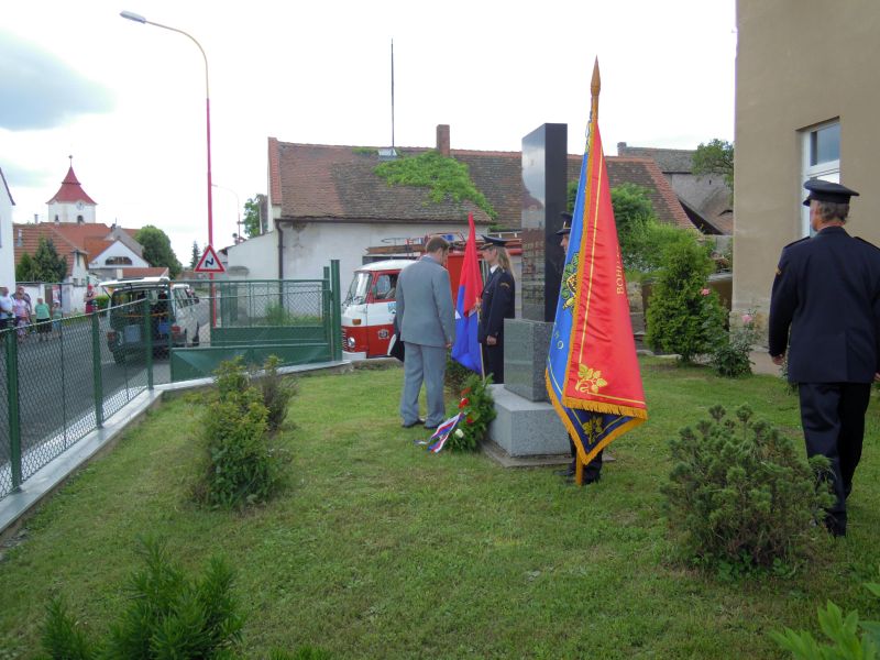 Oslavy zahájili schůzí, které se zúčastnili všichni současní i dřívější příslušníci spolku. Přivítali na ní i hosty pány JUDr Červencla a L. Ložana. Po společném obědě akce pokračovala u pomníku obětem světové války. Zde pronesl slavnostní projev starosta obce pan Fyman a hasiči položili za znění státní hymny věnec k pomníku.