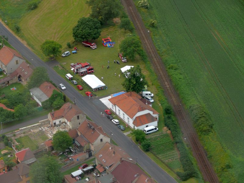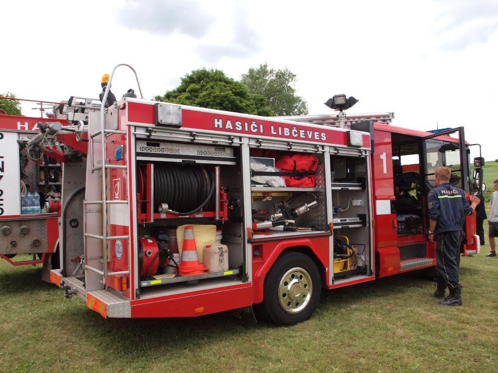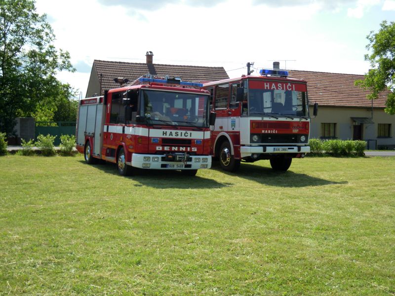 Na hřišti byla vystavena hasičská technika jednotek z Počerad, Tuchořic a Libčevse včetně techniky místního sboru.