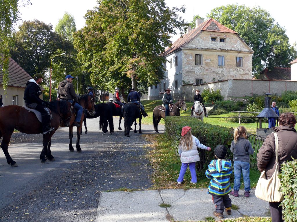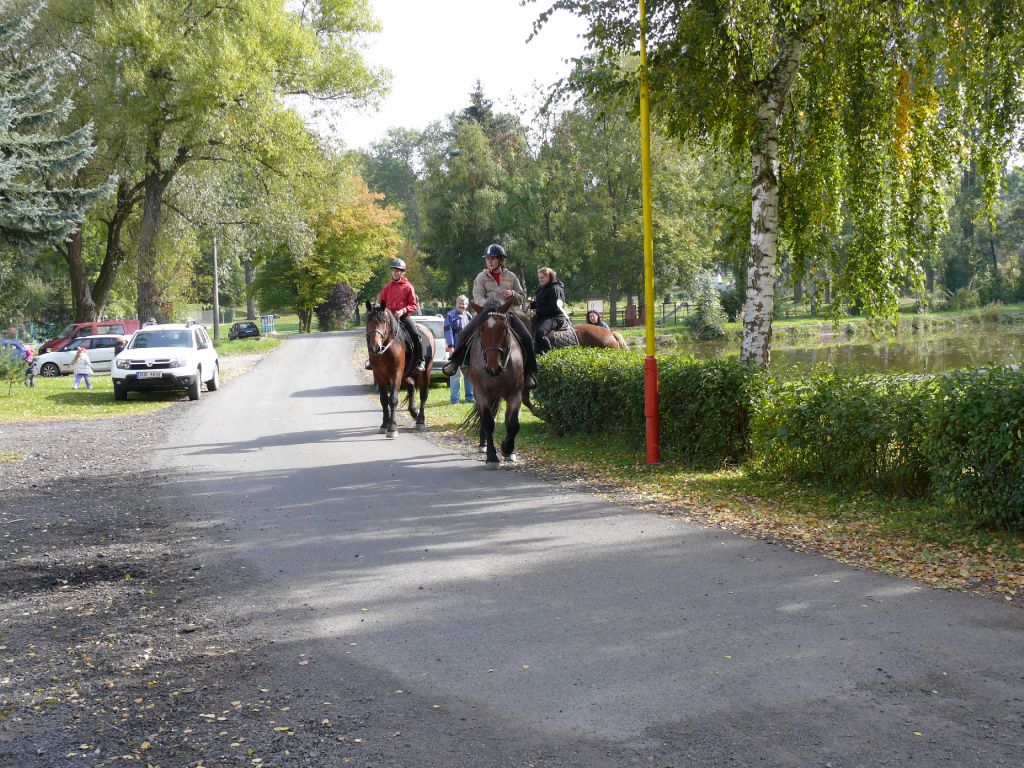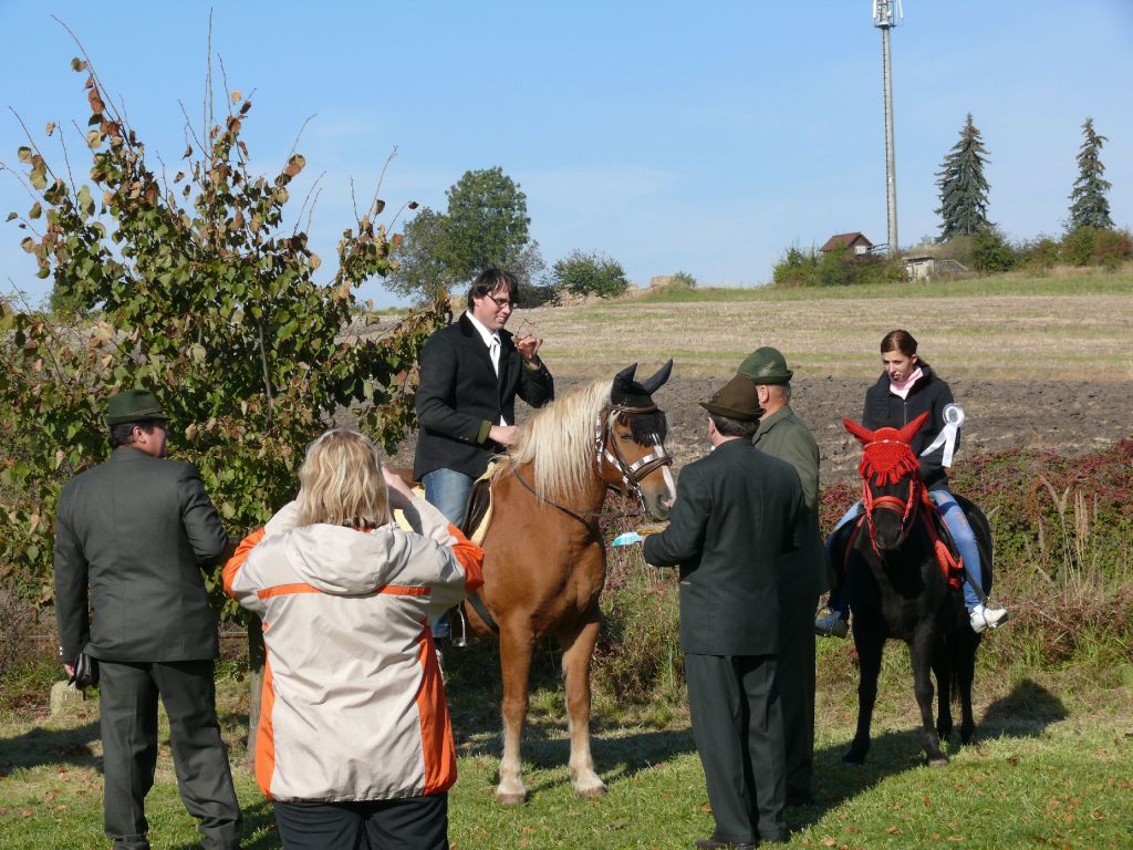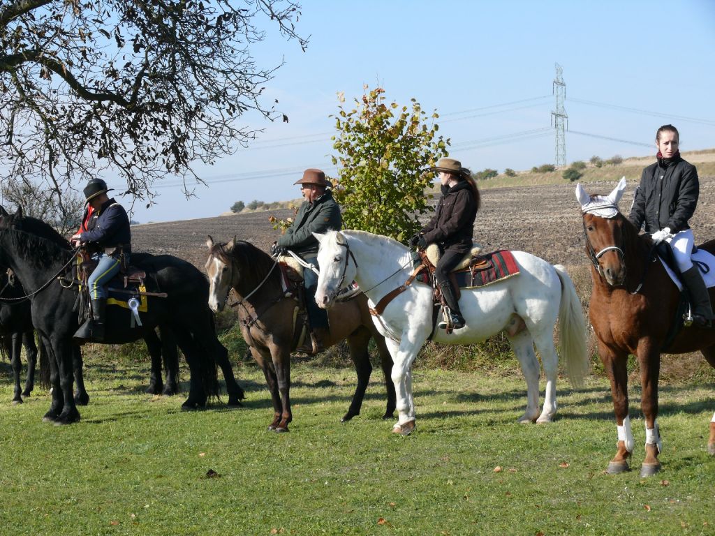 Šťastný návrat popřál všem účastníkům lounský vikář pan Werner Horák a každému koni a jezdci udělil požehnání. Za krásného podzimního dne se pak více než 25 jezdců a koní vydalo na závěr jezdecké sezony na projížďku do sluncem prozářeného Podlesí. Vlastní průběh jízdy se nesl ve velkém tempu a to hlavně zásluhou značného počtu mladých jezdců. Uznání zaslouží 4 chladnokrevníci, kteří nasazenému tempu bez problémů stačili. A tak jediným zádrhelem bylo zabloudění 7 účastníků jízdy, kteří do cíle dorazili až po vyhlášení vítěze.