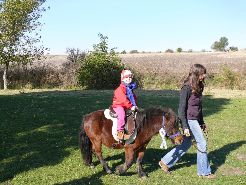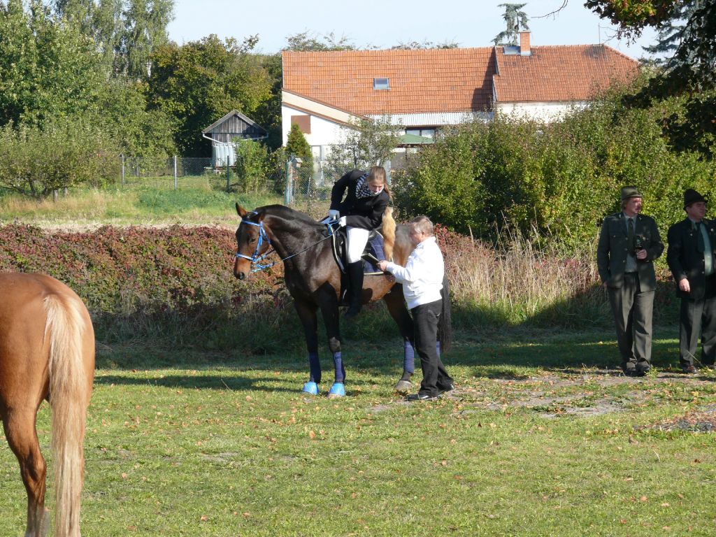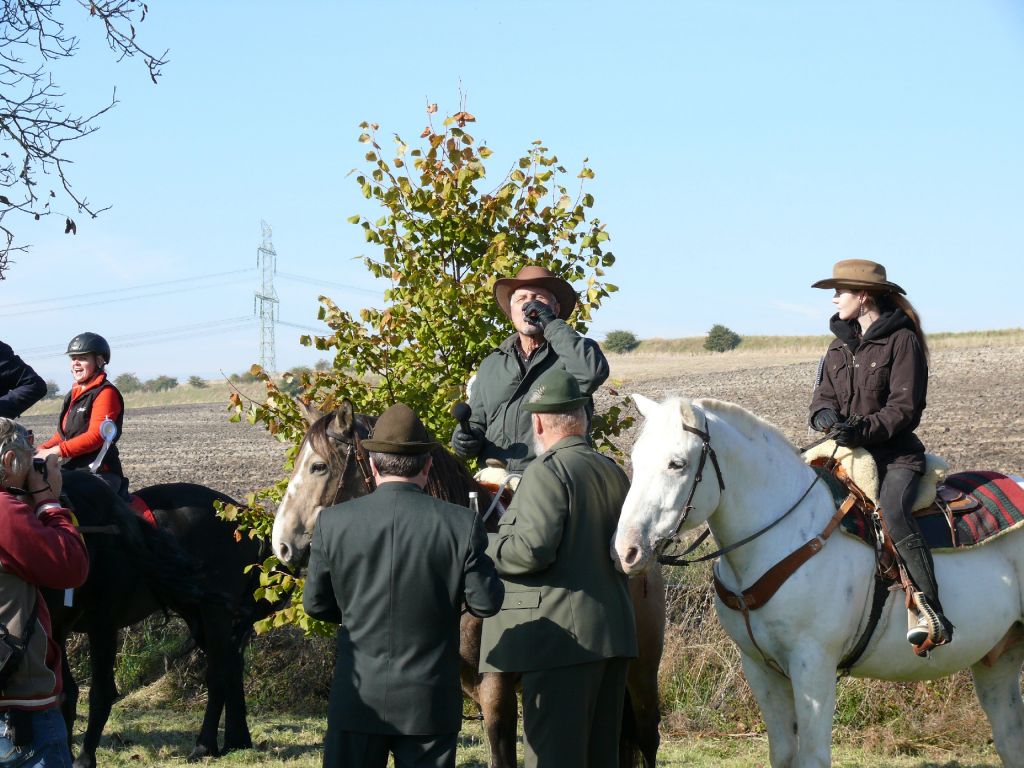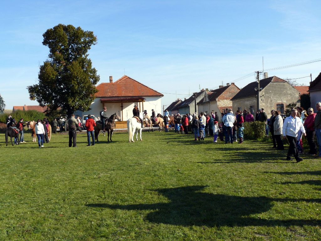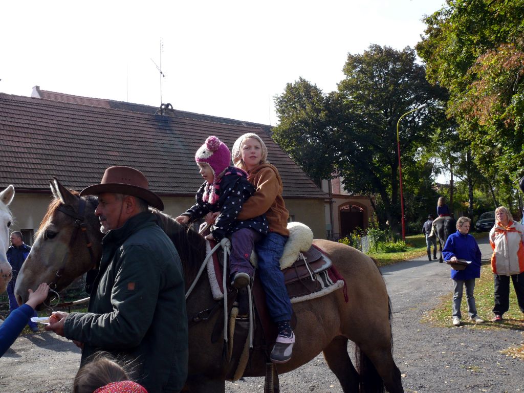 Šťastný návrat popřál všem účastníkům lounský vikář pan Werner Horák a každému koni a jezdci udělil požehnání. Za krásného podzimního dne se pak více než 25 jezdců a koní vydalo na závěr jezdecké sezony na projížďku do sluncem prozářeného Podlesí. Vlastní průběh jízdy se nesl ve velkém tempu a to hlavně zásluhou značného počtu mladých jezdců. Uznání zaslouží 4 chladnokrevníci, kteří nasazenému tempu bez problémů stačili. A tak jediným zádrhelem bylo zabloudění 7 účastníků jízdy, kteří do cíle dorazili až po vyhlášení vítěze.