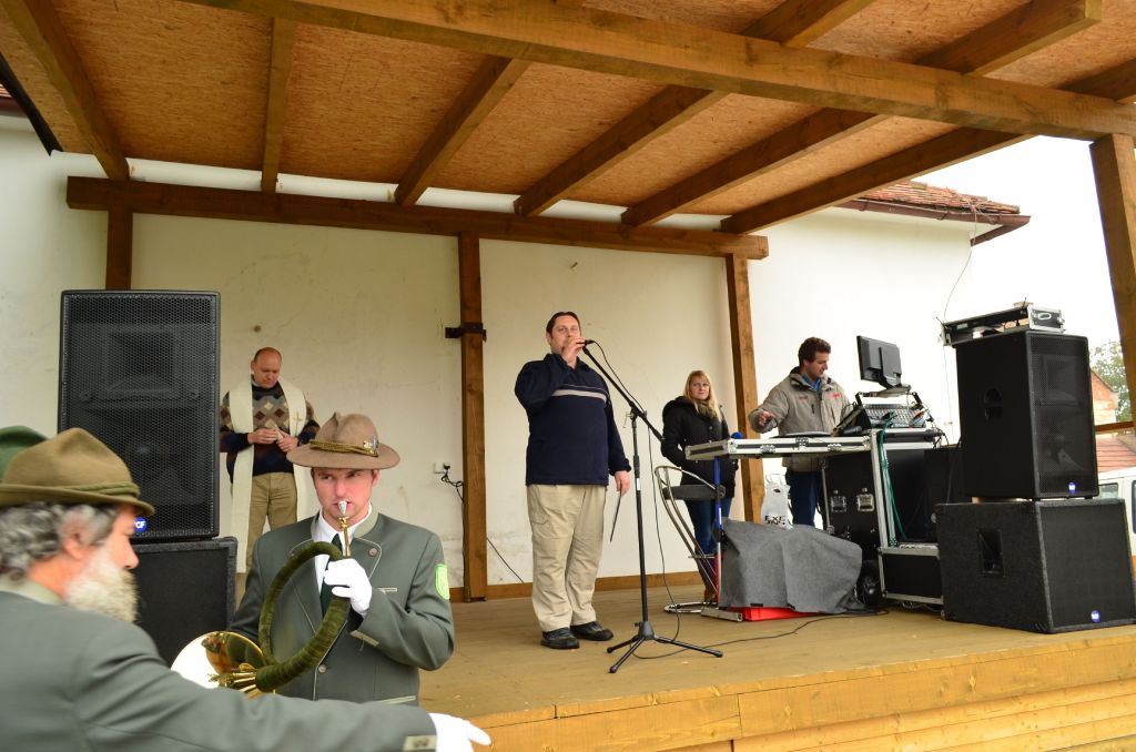Již tradičně zahájila jízdu fanfára Křivoklátských trubačů. Všechny jezdce, koně a diváky přivítal pan starosta V. Fyman a myslivci podali všem koním ovsa a jezdcům něco pro zahřátí. Kpt. Mgr. Petr Fiala, kaplan velitelství 4. brigády rychlého nasazení, pronesl krátkou řeč a požehnal jednotlivě koním i jezdcům. Během proslovů vybírali diváci nejsympatičtějšího koně. Letos se nejvíce líbil kůň Sam Anežky Lešákové. O ozvučení a hudební doprovod celého programu u sokolovny se výborně postaral DJ Tony.