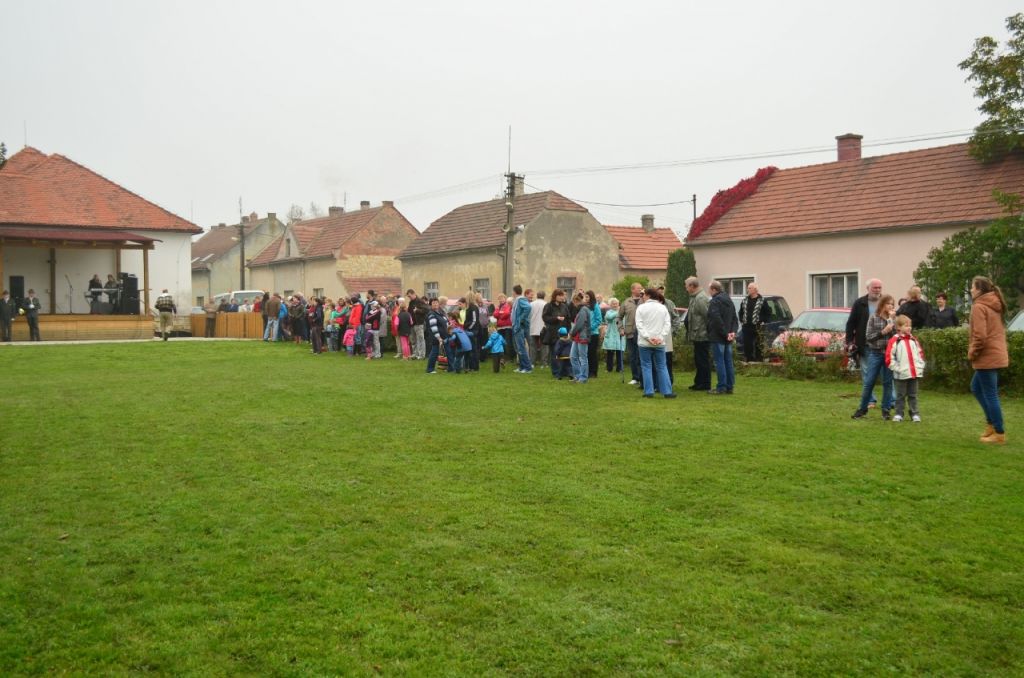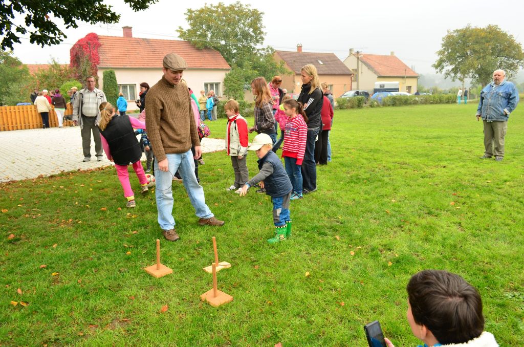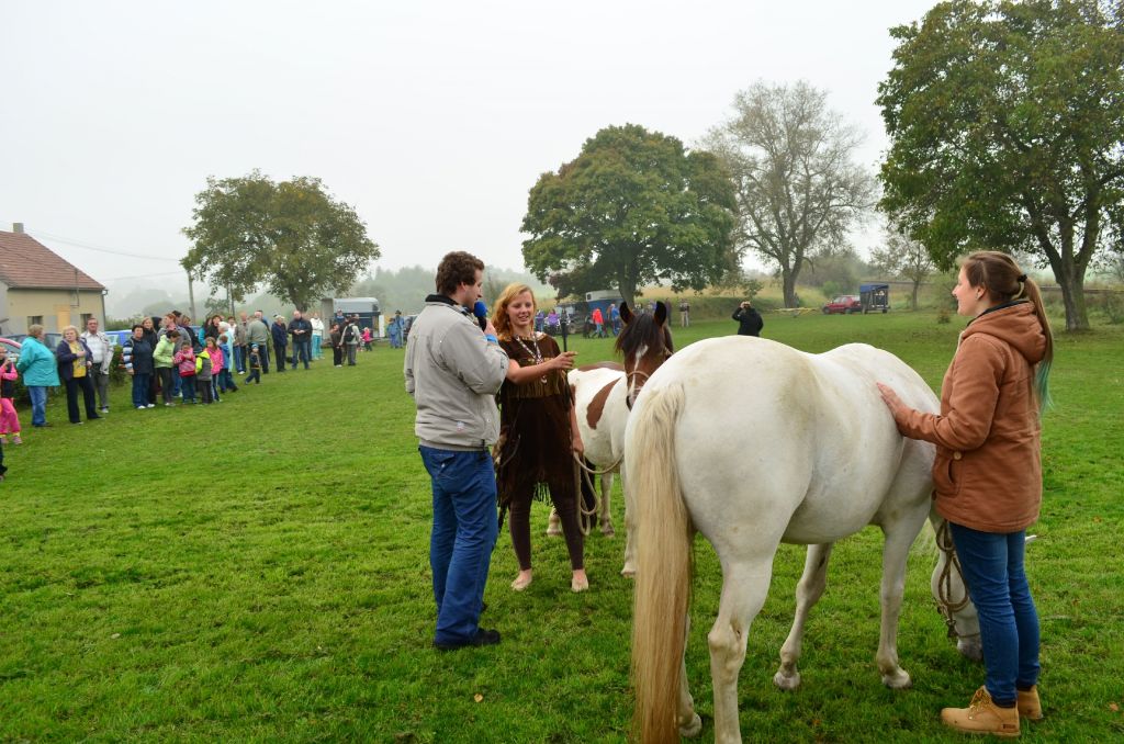 Po odjezdu koní na trať pokračoval u sokolovny program pro diváky. Bohužel se pro zranění koně nepovedlo uskutečnit slíbenou westernovou ukázku, ale náhradou jsme viděli krásnou koňskou drezuru v podání Lucie Boháčové. V leckterém cirkusu by určitě byla vítána. Ukázka agility obou pejsků měla rovněž úspěch, zejména se líbilo psí frisbee. Děti si mohly také vyzkoušet jízdu na poníku a hasiči pro ně ještě připravili několik her.
